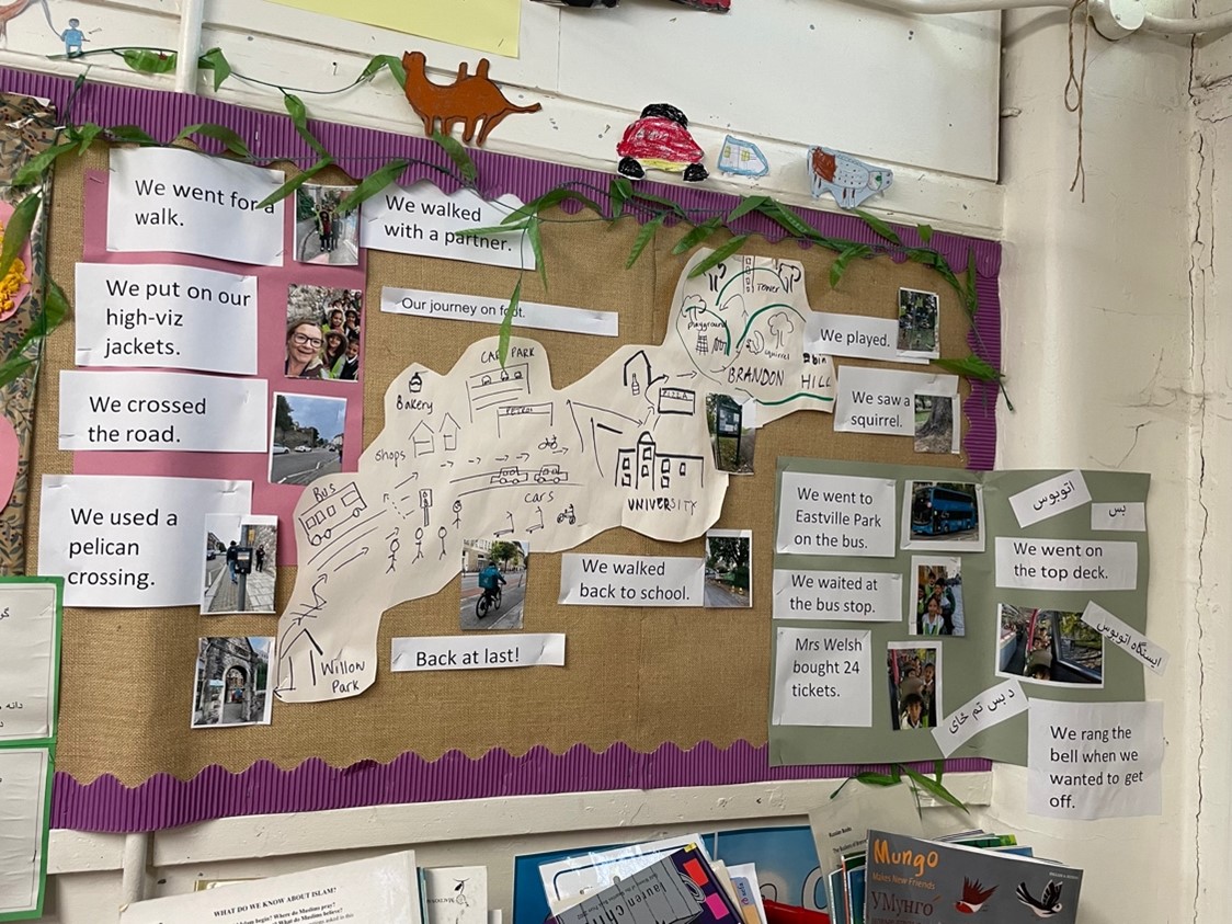 We encourage children to use their whole language repertoire for learning. Our children discuss lesson content with other speakers of their home language where possible, and translate key vocabulary where appropriate. We have bilingual story books in all our classrooms and we talk to parents about the importance of home language development and their role in it. Many of our staff are bilingual, and we have in-house interpreters who speak Arabic, Hindi, Gujarati, Punjabi, French, Spanish, Portuguese, Macedonian and Swedish. We also have a team of Young Interpreters who are happy to show new children around the school and support their peers.